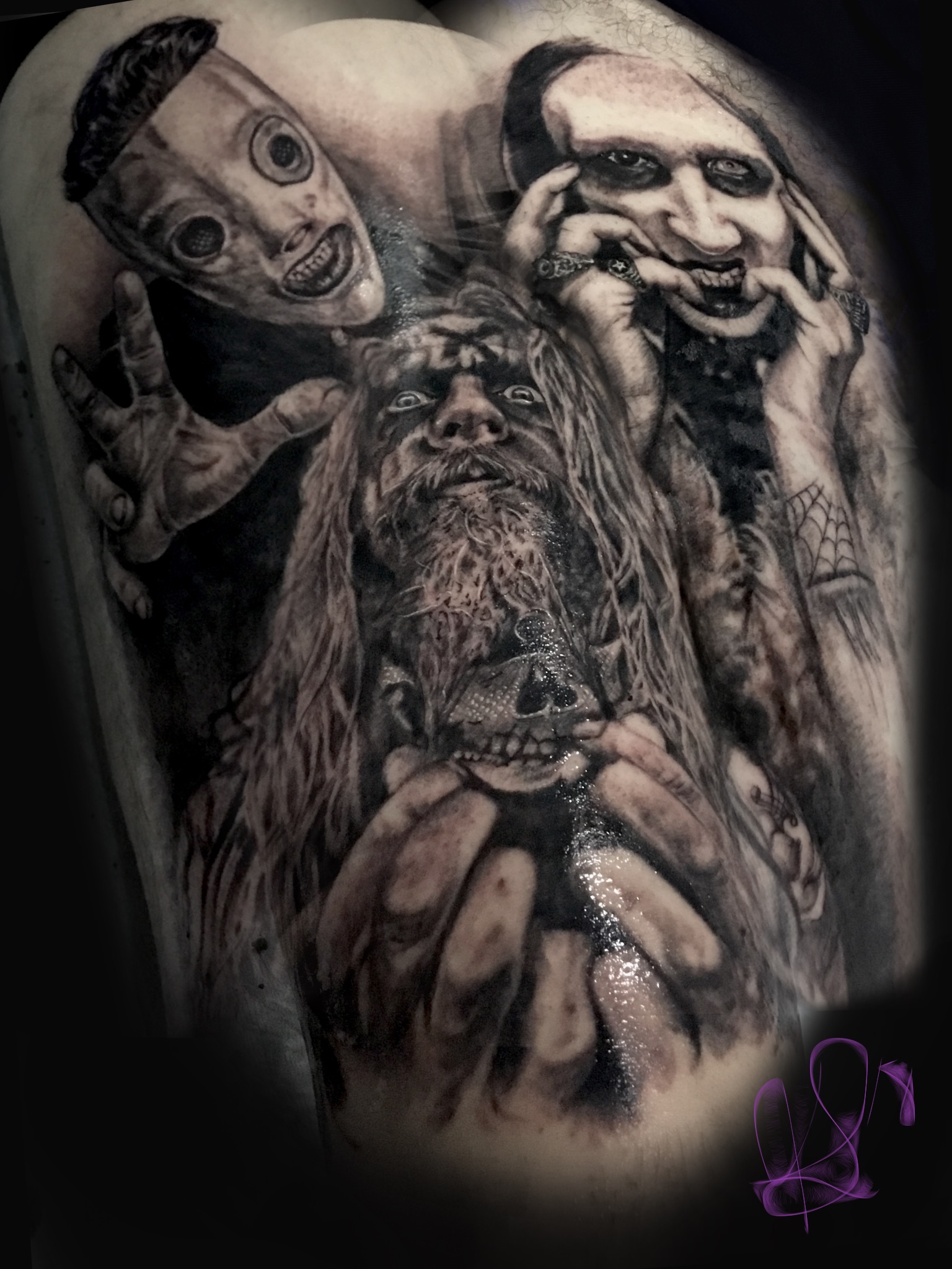 Sacred Tattoos Start Of A Rob Zombie Leg Piece By Tash