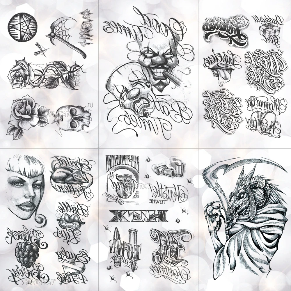 Us 0 84 35 Off Sketch Curlicue Word Clown Mask Waterproof Temporary Tattoo Sticker Classic Old School Flash Tattoos Body Art Arm Fake Tatoo In